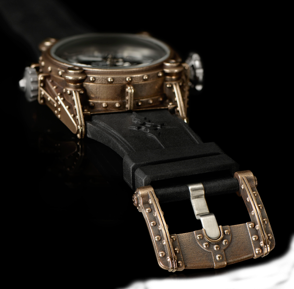 Black rubber strap with an additional genuine alligator strap in brown or black