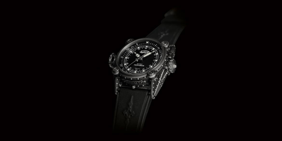 Silver 925 hand-made, curved sapphire crystal with anti-reflective treatment, internal diving bezel, 2 screwed-down crowns