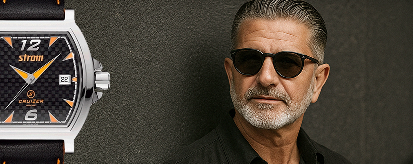 Black-orange sporty leather strap Stainless steel buckle (deployment clasp optional)